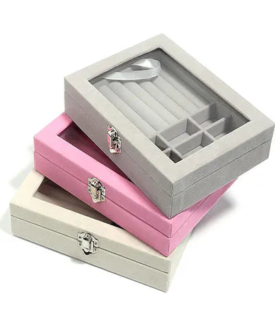 Transparent Velvet Jewelry Organizer Display Box Random Colours